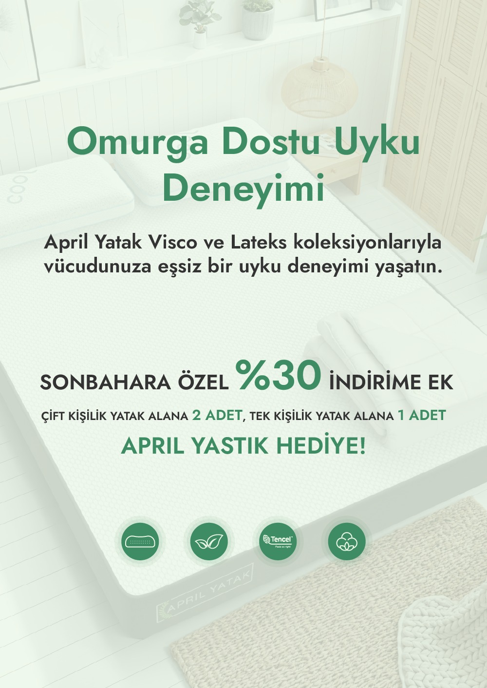 Yine de herhangi bir konuda soru sormak veya sohbet etmek için bize +90 541 114 41 81numaralı WhatsApp hattımızdan yazabilir veya destek@aprilyatak.com'a mail atabilirsin.